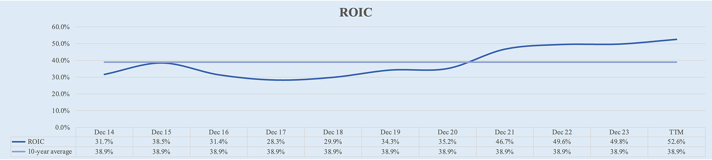 ROIC (Rating: 5): Strong return on invested capital.
